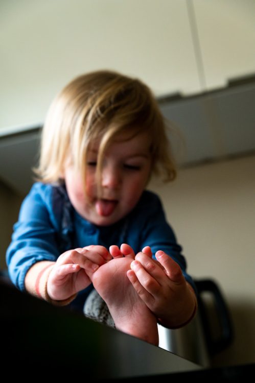 Dingen die je zo leuk/lief/mooi/schattig vindt aan je kind. Maar ook van dingen die nu bij jullie levensfase horen. De herfsttafel misschien? De hal vol met sporttassen? De berg rijst op de grond rondom de kinderstoel? Wat maakt jullie jullie? Zet dat op de foto. Dan zijn het geen kiekjes meer die je maakt, maar herinneringen.