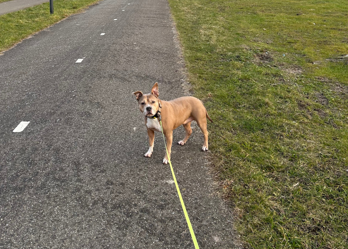 Inmiddels zijn Cacao en Cashew er niet meer en hebben we alleen nog onze kleine druktemaker Layla, een Stafford-mixje. Een kortharige tank-op-pootjes, zoals we haar gekscherend wel eens noemen. Layla is echt precies het tegenovergestelde van mijn Labradors. Ze haat regen en blubber. Toch is er iets wat zij wél doet, dat die twee anderen nooit hebben gedaan: rollen in de ganzenstront. Gadverdamme. Zie die geur maar eens uit die vacht te krijgen!
