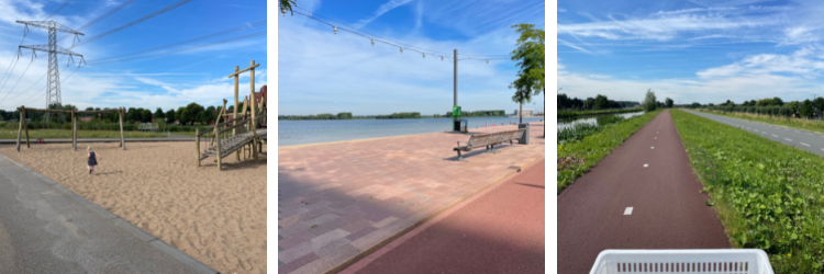 Terwijl Nova zich in de speeltuin vermaakte, ging ik even op onderzoek uit bij de andere ingang van de kinderboerderij. Ik had eerder wel gezien dat er aan de achterkant een uitgang was, maar waar die dan heen ging? Je moet weten dat ik hier niet vandaan kom he, dus alles gaat met Google Maps. Goed, wat bleek: als je dat pad neemt, fiets je zo Oud Verlaat in en kun je via de andere kant van de Zevenhuizerplas fietsen en dat rij je zo Nesselande weer in. Leek me een goed idee.
