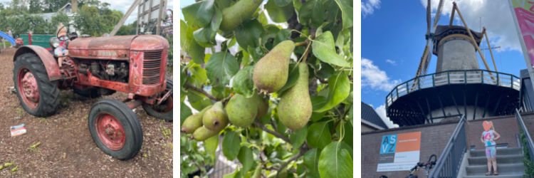 Op vrijdag is het markt hier in het dorp en omdat ik daar nu ik Pippa naar school moet brengen niet meer kom, vind ik het in de vakanties altijd wel leuk om daar even de boodschapjes te halen. Daarna zijn we doorgereden naar Van der Spek in Waddinxveen. Ik twijfelde eerst nog om daar ook heen te fietsen, maar in de volle zon met een vol krat voor groente en fruit terug leek me toch aanzienlijk minder leuk, haha. Bij dit tuincentrum zit dus ook een grote versmarkt met groente, fruit, kaas en andere lekkere dingen. Altijd goed voor een boodschappentas vol lekkere dingen! In de tuin van het plantencentrum is er ook nog een hele fijne speeltuin. Nova heeft lekker geschommeld, we sprongen op de trampoline en ze wilde graag op de foto op de tractor.