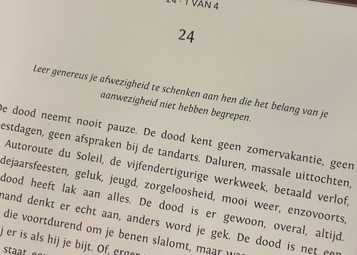 Leer genereus je afwezigheid te schenken aan hen die het belang van je aanwezigheid niet hebben begrepen. Denk daar maar eens goed over na. Waarom zou je moeite doen mensen te blijven zien, die ook niet de moeite nemen om jou te blijven zien. Eerlijk: op meerdere vlakken heeft dit boek me aan het denken gezet en ik denk zeker dat jij het ook prachtig zult vinden.