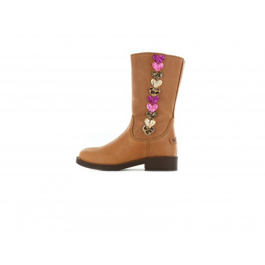 Tot slot de cognackleurige laarzen met hartjes. Je snapt, niet mijn keuze, maar zeker wel die van mijn meiden. Hartjes en glimmers is hier in huis een 100% match, haha.